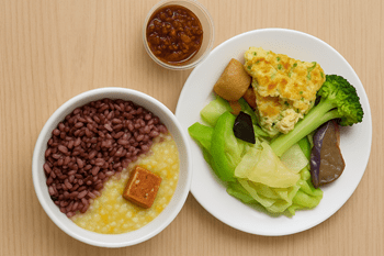 午餐評估|紫米+南瓜粥、1/4豆腐乳、綜合青菜與炒蛋
